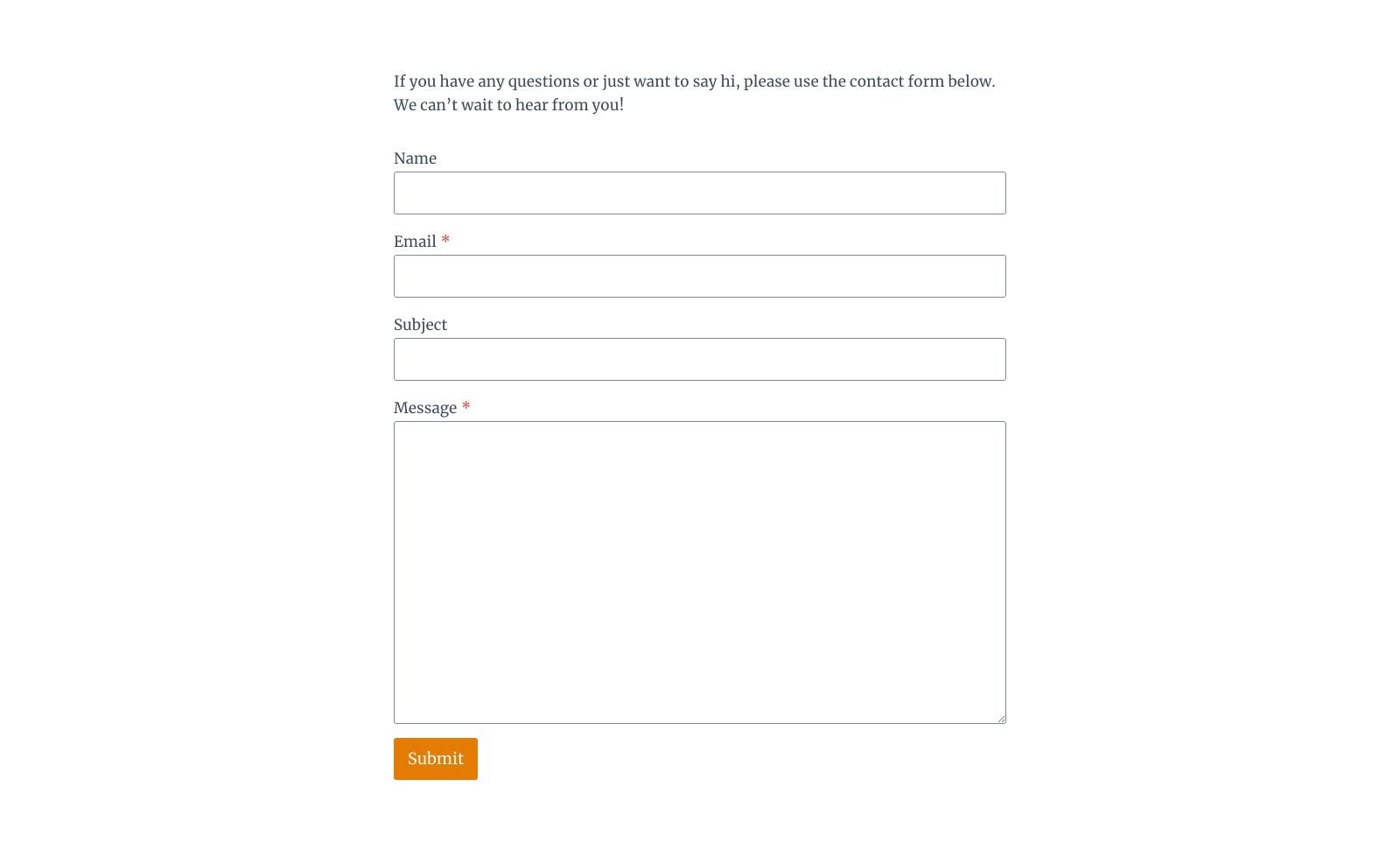 Start / ContactContact If you have any questions or just want to say hi, please use the contact form below. We can’t wait to hear from you! NameEmail*SubjectMessage*EmailSubmit Bitte aktiviere JavaScript in deinem Browser, um dieses Formular fertigzustellen.